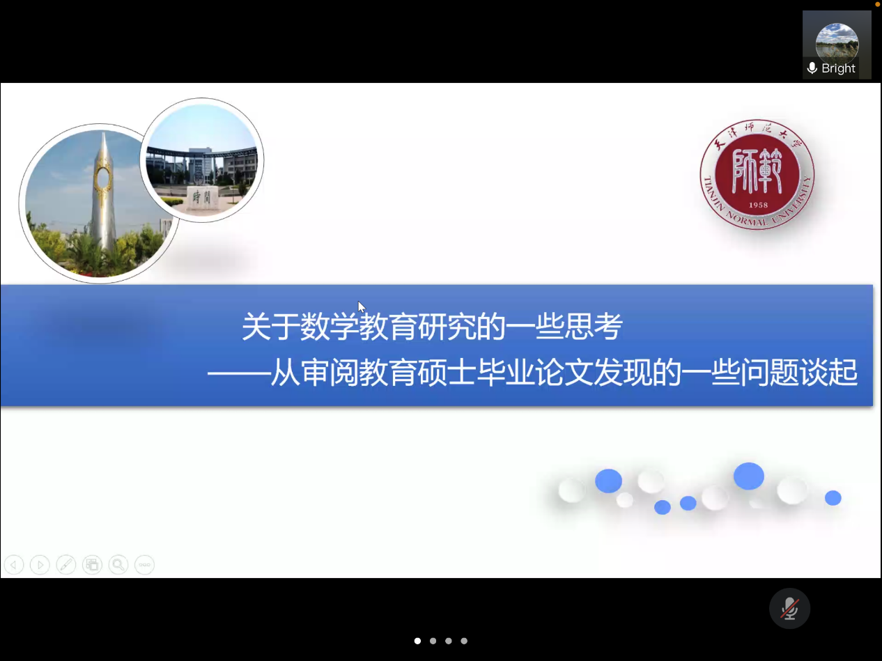 为提高我校教师和硕士研究生的教科研水平,提升科研素质能力,4月22日晚,科研处邀请了天津师范大学教育学部部长王光明教授做了题为《关于数学教育研究的一些思考——从审阅教育硕士毕业论文发现的一些问题谈起》专题讲座,本次讲座采用腾讯会议的方式线上进行,课程与教学研究所部分老师、全体与南师大联合培养研究生以及部分中小学骨干教师计50余人参会学习。