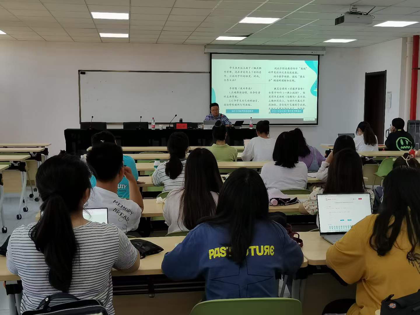 2021年6月24日下午,“笃行”系列讲座“从好学生到好老师”在江苏石湫校区崇文楼2-414教室举行。讲座的主讲人是江苏第二师范学院汉语言文学教育专业2003界优秀毕业生、南京市科利华紫金中学副校长何欣,文学院党总支书记刘莹老师主持讲座,文学院师生到现场聆听讲座。