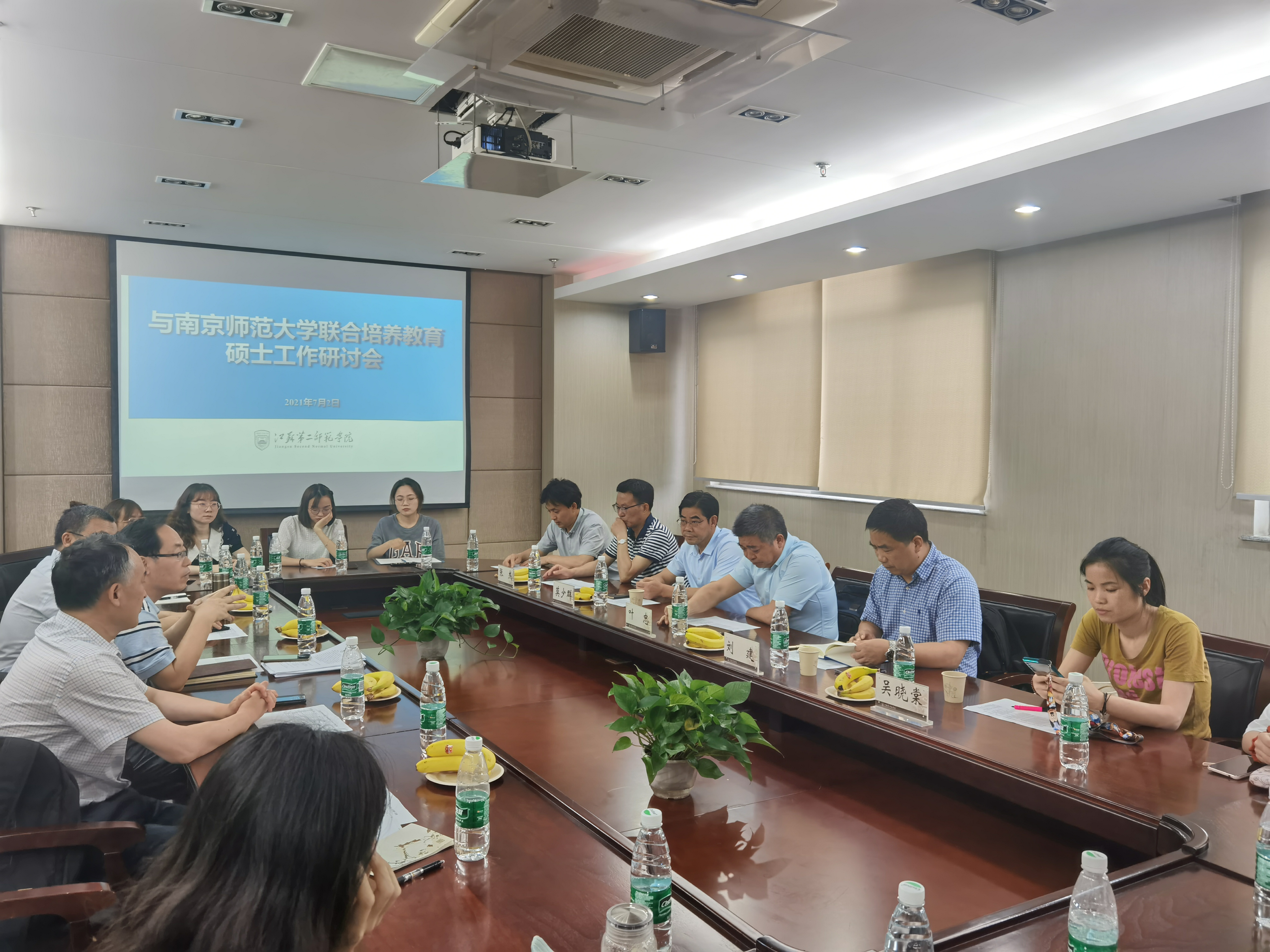 7月2日下午,我校与南京师范大学联合培养教育硕士工作交流研讨会顺利举行。南京师范大学研究生院院长莫少群,教师教育学院院长叶忠、副院长刘建、书记张杰和副书记刘更生等应邀参加会议。我校科研处处长章飞,质评处处长陈蓓,文学院院长冯保善,生命科学与化学化工学院院长蒋功成,以及联合培养研究生出席会议。章飞主持会议。