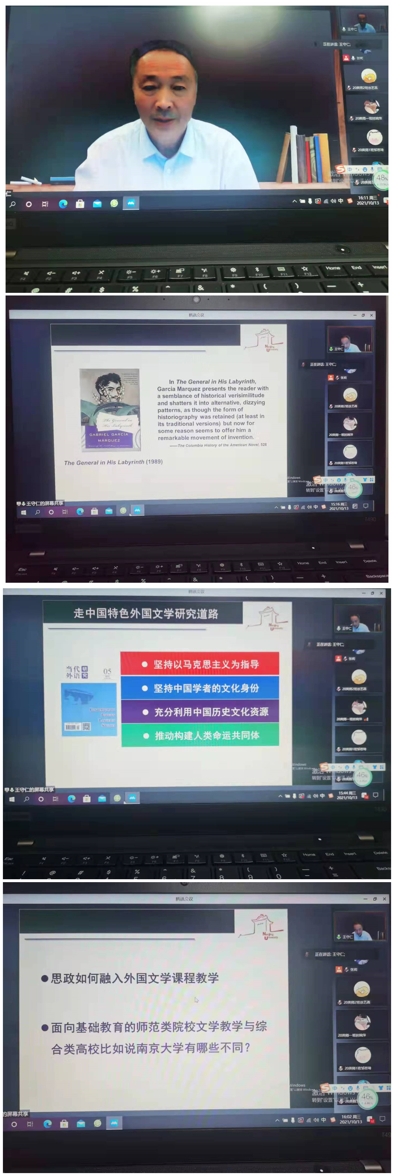 11月13日,南京大学王守仁教授应邀为外院师生作“读书·思考·学习——谈外国文学的学习与研究”的线上专题讲座。讲座由外语学院院长张莉教授主持。