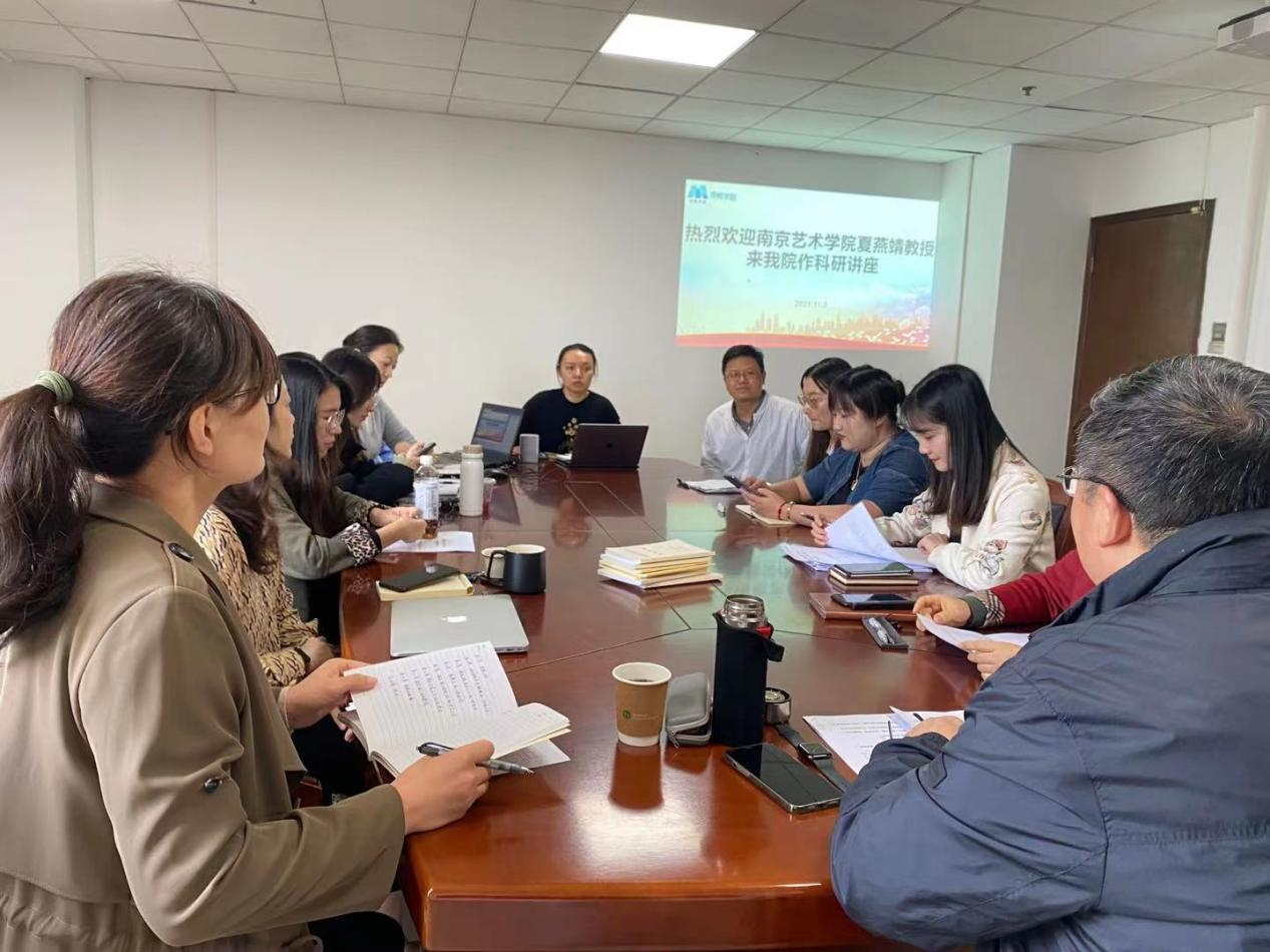 2021年11月3日,南京艺术学院夏燕靖教授应邀到传媒学院做“艺术学基金项目申报”专题辅导报告。夏燕靖教授是全国艺术学理论学会常务理事、中国工艺美术学会理论委员会委员。报告会由传媒学院副院长张莹博士主持,传媒学院全体教师聆听讲座。