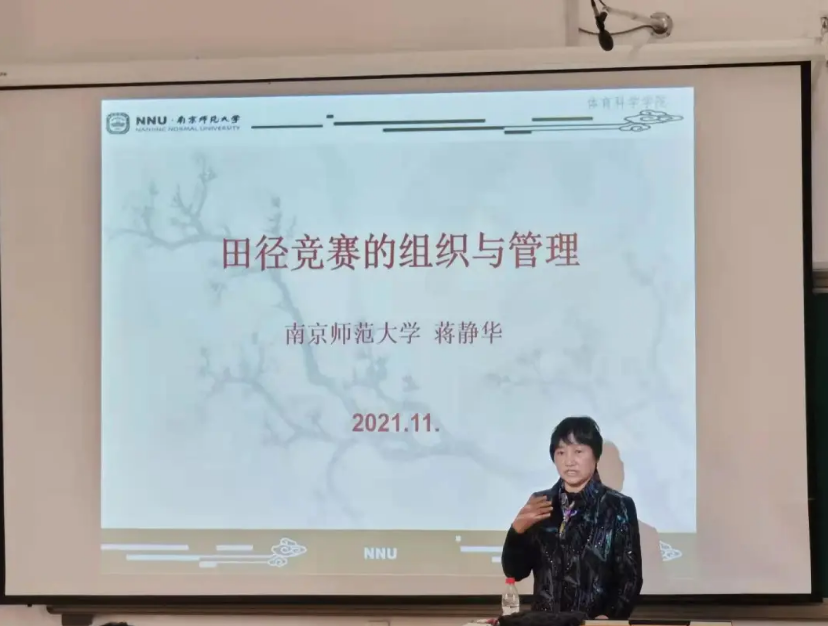 2021年11月3日下午14:00,南京师范大学体育科学学院蒋静华院长在石湫校区博学楼3号楼202室,为体育学院师生就“田径竞赛的组织与管理”开展了讲座。体育学院党总支书记、副院长田磊老师主持讲座。