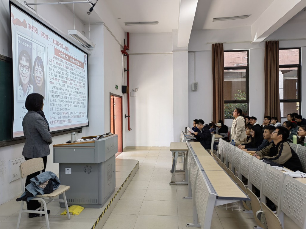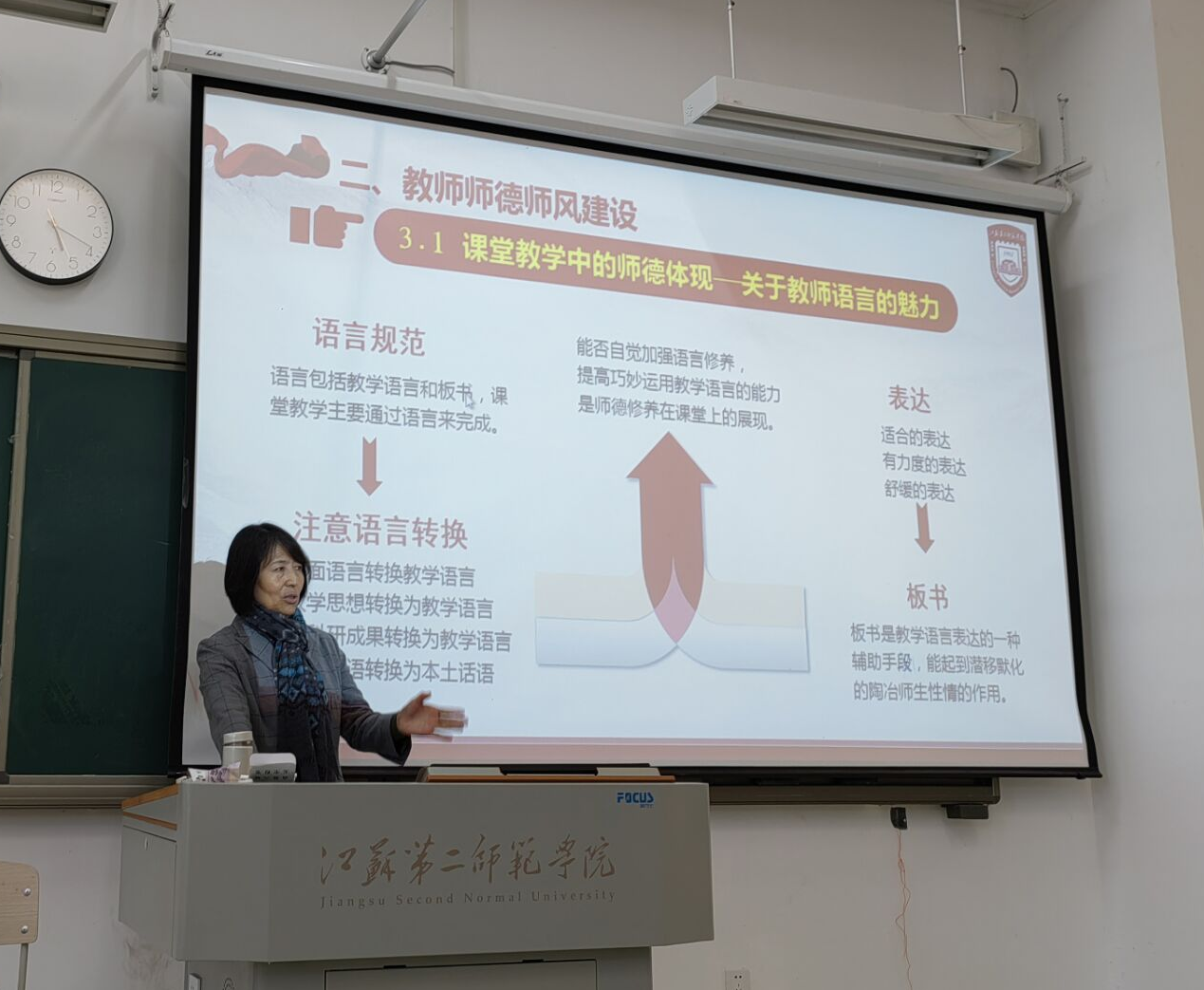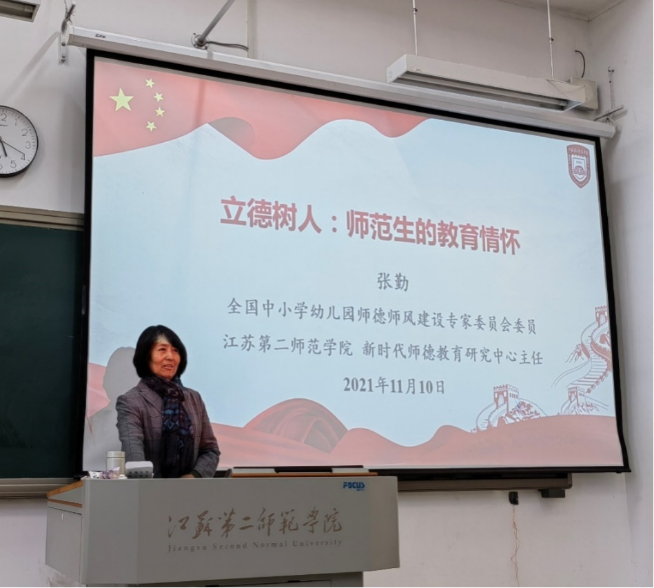2021年11月10日下午,我校师德研究中心主任张勤教授在博3-101教室开设主题为“立德树人:师范生的教育情怀”的专题讲座,物电学院教师和21级物理专业全体新生到场聆听讲座,物电学院党总支副书记李佶莲主持讲座。