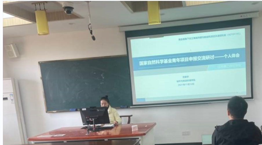 范擎宇则重点为新教师们介绍了国家自然科学基金青年项目申请的若干技巧,从基金申请的前期准备阶段、撰写阶段和后期打磨完善阶段和大家分享了自己的心得体会以及注意事项。