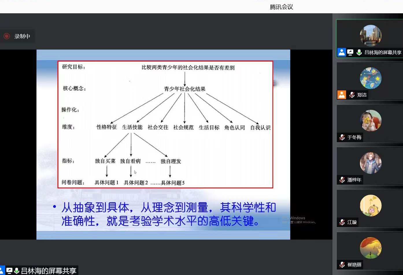 吕教授从定量研究的基本内涵讲起,援引了南京大学风笑天教授对“研究”及“教育研究”的定义,并用“学生下位标签对学习的影响”及“街角社会对黑人流浪者的意义”两个案例生动具体地阐述了定量研究和定性研究的联系和区别。