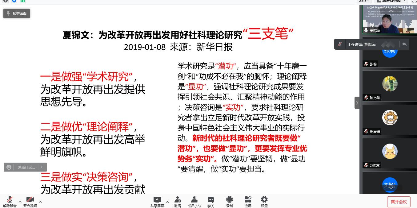 12月15日,南京师范大学董晓波教授应邀为我院师生做“外语学科的课程思政与国家社科基金申报”的线上专题讲座。讲座由外语学院院长张莉教授主持,外国语学院全体教师在线聆听讲座。