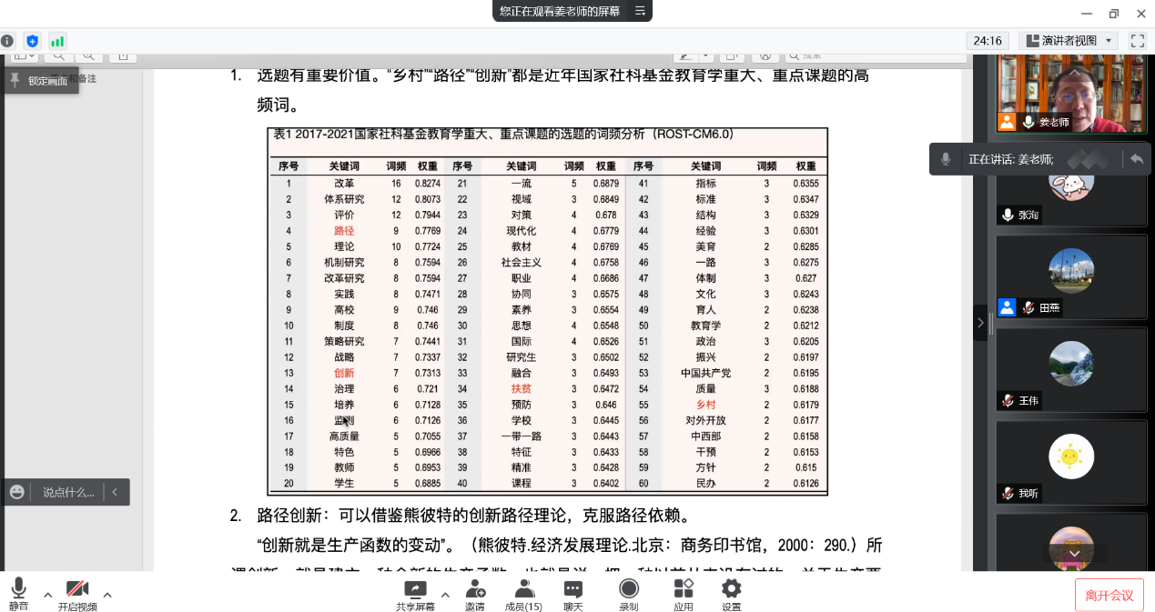 本次参会的老师一致表示经过姜勇教授的指导受益匪浅,也对申报书的修改及后续研究有了更加清晰的思路。