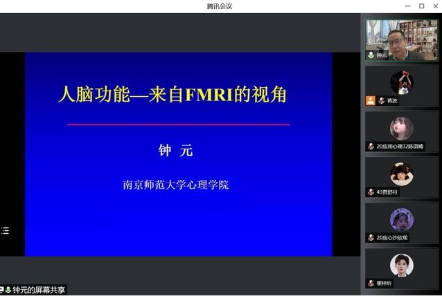 2022年4月6日,南京师范大学心理学院副院长、“心理健康与认知科学”江苏省重点实验室副主任、江苏省社科优青、博士生导师钟元教授受邀为教育科学学院应用心理学专业师生们作了题为“脑功能——来自功能核磁共振成像的视角”的线上学术报告,报告由院长蒋波教授主持,应用心理学专业全体师生在线参与。