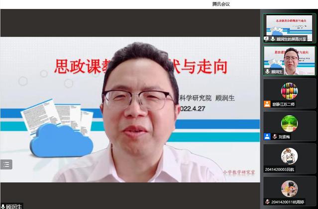 2022年4月27日,马克思主义学院开展了以“思政课教学的现象与走向”为题的专题讲座。本次讲座特别邀请江苏省中小学思政课教研员顾润生教授主讲,刘素梅院长主持,320余名师生在云端共同参加了本次讲座。