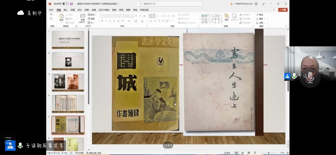 2022年5月6日下午,校庆系列讲座暨“木铎”讲座第五十五讲“钱钟书的文学创作与学术研究”在线上顺利举行。本次讲座的主讲人是南京艺术学院博士生导师、图书馆副馆长孔庆茂教授。孔教授是南京艺术学院文物保护与修复专业学科带头人,南京儒家礼仪研究会会长。主要著作有《钱钟书传》《辜鸿铭评传》《流言与传奇:张爱玲评传》《八股文史》等。讲座由文学院马炜副教授主持,文学院四百多名学生和校外众多文学爱好者在线聆听了此次讲座。