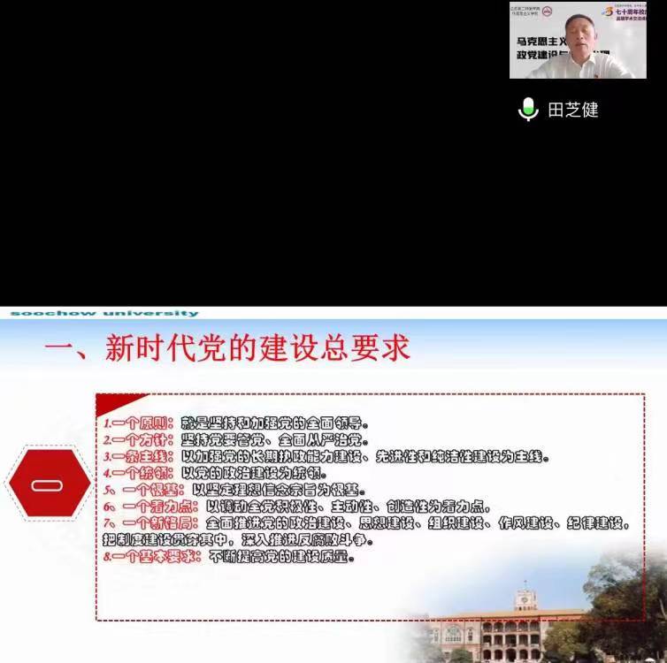 5月18日下午,马克思主义学院在线成功举办“政党建设与党内治理”思政专业高端学术交流讲座。该讲座由苏州大学马克思主义学院院长田芝健教授主讲,由学院院长刘素梅教授主持,马克思主义学院师生聆听讲座。