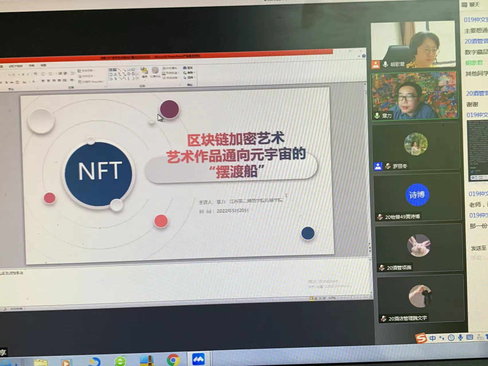 5月20日,传媒学院副院长章力为我校师生做了题为《区块链加密艺术:艺术作品通向元宇宙的“摆渡船”》的讲座。讲座由国际合作与交流处处长周韵教授主持。