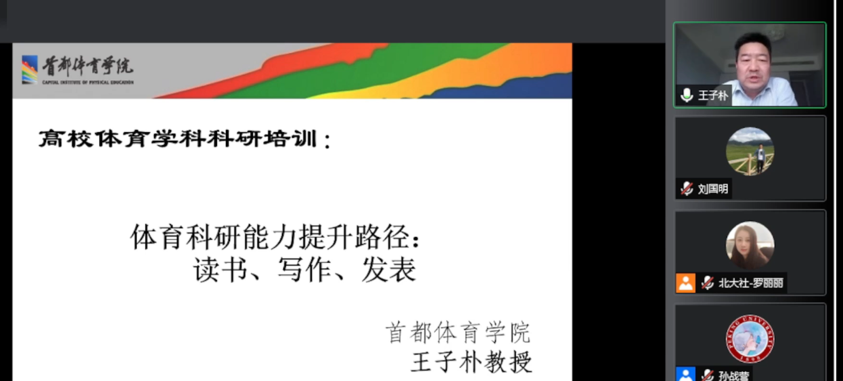 为持续加强体育学院教师科研写作能力,提高教师科研能力,5月25日上午,体育学院举办主题为“体育科研能力提升路径:阅读、写作、发表”的专题学术讲座,本次讲座主讲专家王子朴教授系首都体育学院博士生导师,科技处处长。此次讲座由学院党总支书记田磊主持,采用线上模式,学院全体教师参加。