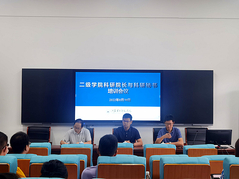 2022年8月30日,科研处在石湫校区举办二级学院科研院长与秘书培训会议,副校长刘贵友出席并讲话,会议由科研处处长章飞主持。