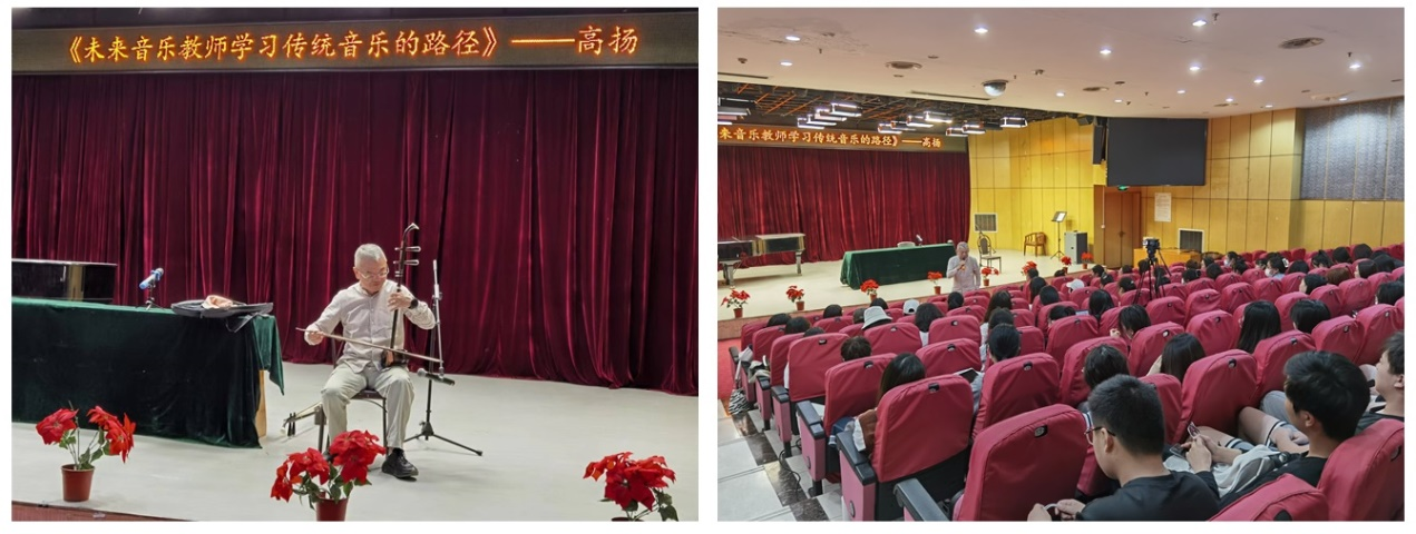 2022年9月21日下午2点,著名二胡演奏家、教育家、国家一级演奏员,中国音乐家协会会员,中国民族管弦乐学会常务理事、中国胡琴专业委员会副会长兼秘书长。中央音乐学院客座教授、中国音乐学院客座教授、中国人民大学客座教授、北京航空航天大学兼职教授、台湾台南艺术大学客座教授,日本华乐团客座首席。中央电视台“CCTV民族器乐电视大赛”评委高扬教授,应江苏第二师范学院音乐学院邀请,在演奏厅举办了一场题为《未来音乐教师学习传统音乐的途径》的专题讲座。本场讲座作为音乐学院理论教研室组织的迎70周年校庆系列讲座活动,由音乐学院副院长周乐、理论教研室主任王丞共同主持。