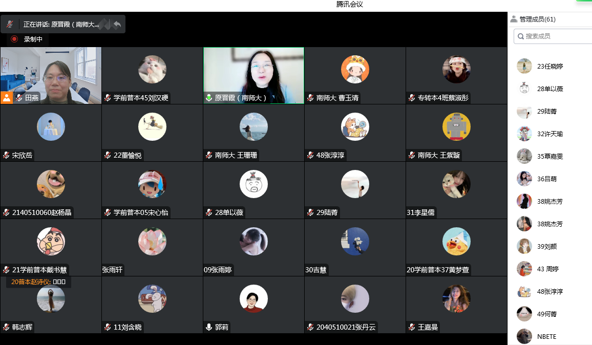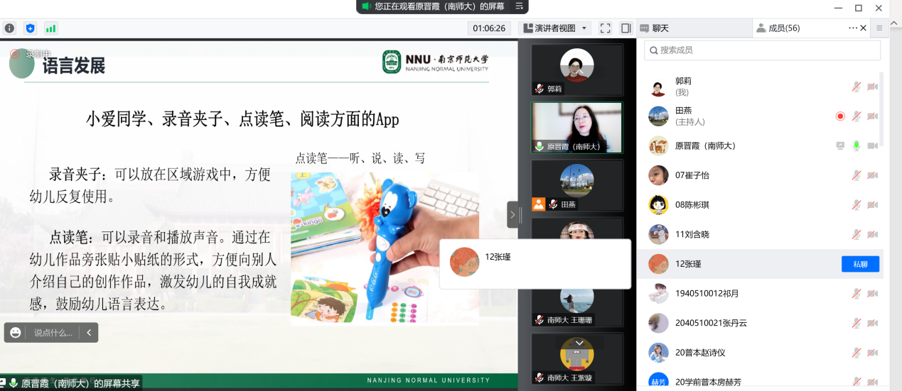 为迎接江苏第二师范学院70年校庆,学前学院邀请南京师范大学原晋霞老师于2022年10月10日面向本院师生举办了题为“人工智能时代幼儿园教育发展的机遇和挑战”的在线学术讲座。讲座由田燕院长主持。