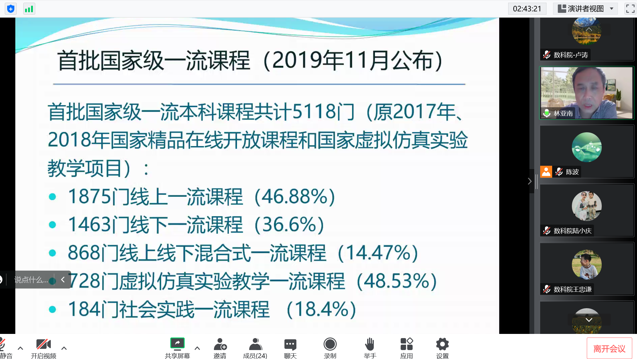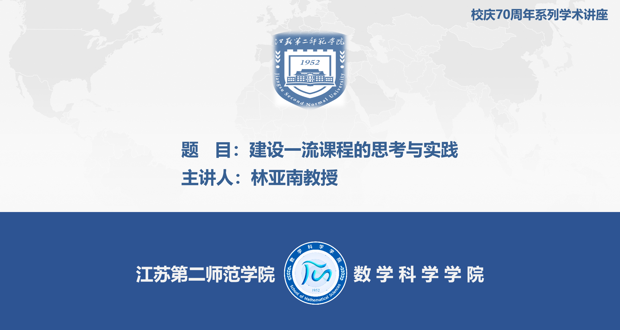 为庆祝建校70周年,11月18日晚,应数学科学学院的邀请,厦门大学数学科学学院林亚南教授为学院师生作了题为“建设一流课程的思考与实践”的报告,学院全体教师参加,报告由卢涛教授主持。