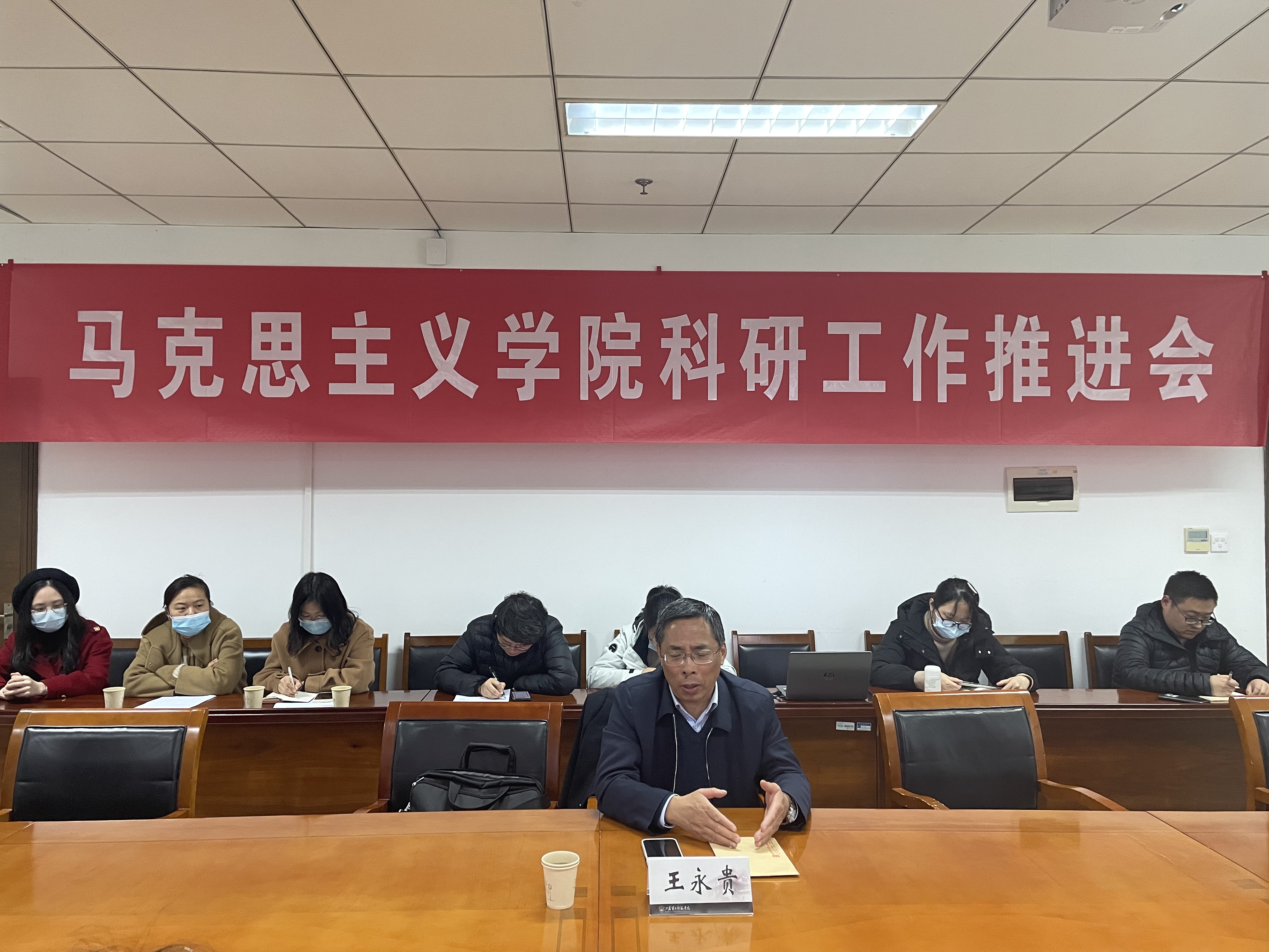 2023年3月22日,我校马克思主义学院在教科研楼503室召开科研工作推进会,特邀长江学者、南京师范大学教授王永贵来校作科研指导,院长刘素梅主持会议。