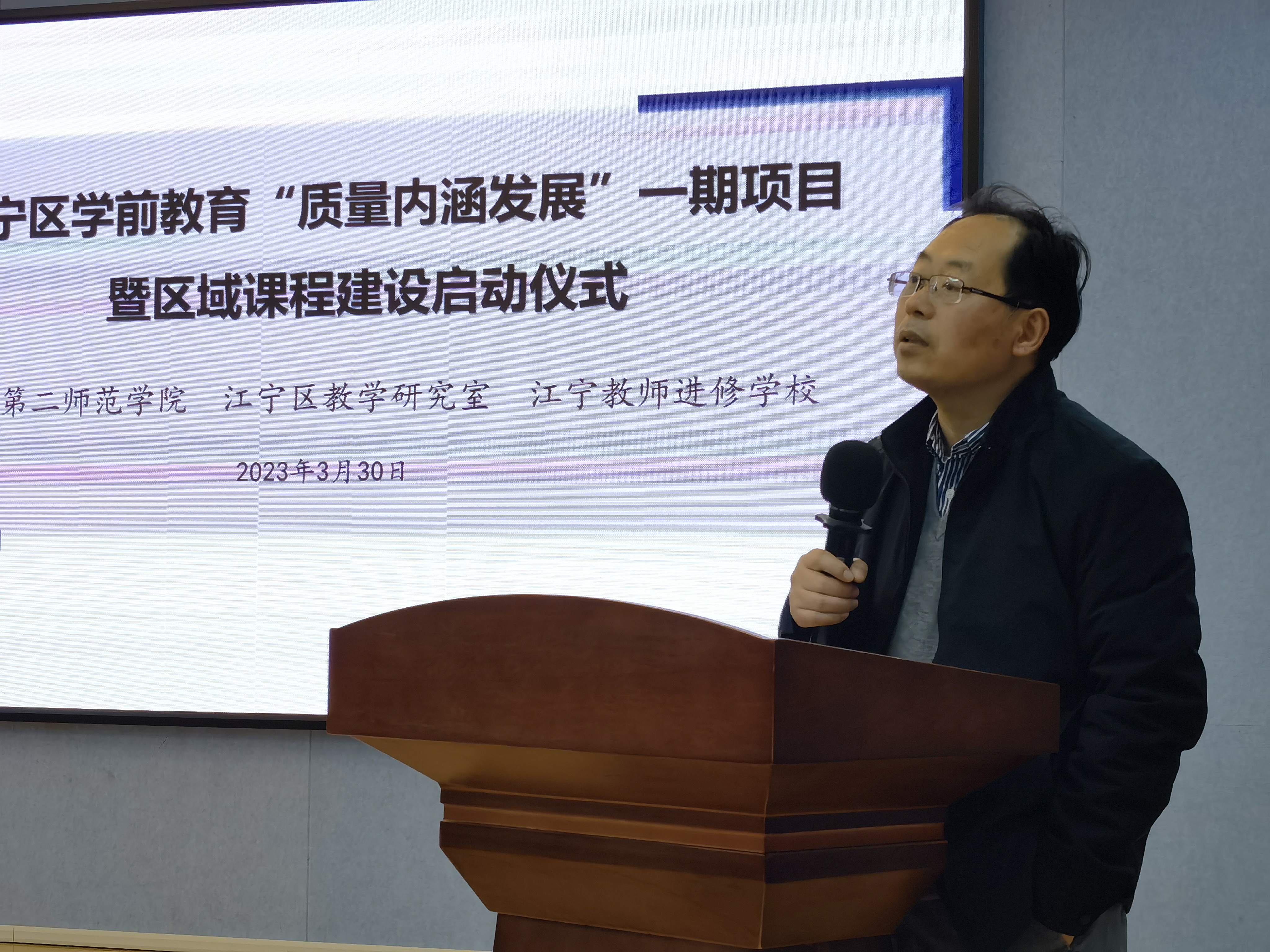 3月30日,由江苏第二师范学院、江宁区教学研究室和江宁教师进修学校共同举办的“江宁区学前教育‘质量内涵发展’一期项目暨区域课程建设” 活动启动。南师大吴康宁教授,江苏第二师范学院尹坚勤教授、学前学院领导班子、学院骨干教师,江宁区幼教管理团队、教研室主任、江宁区核心示范园与实验园教师参加了此次启动仪式。