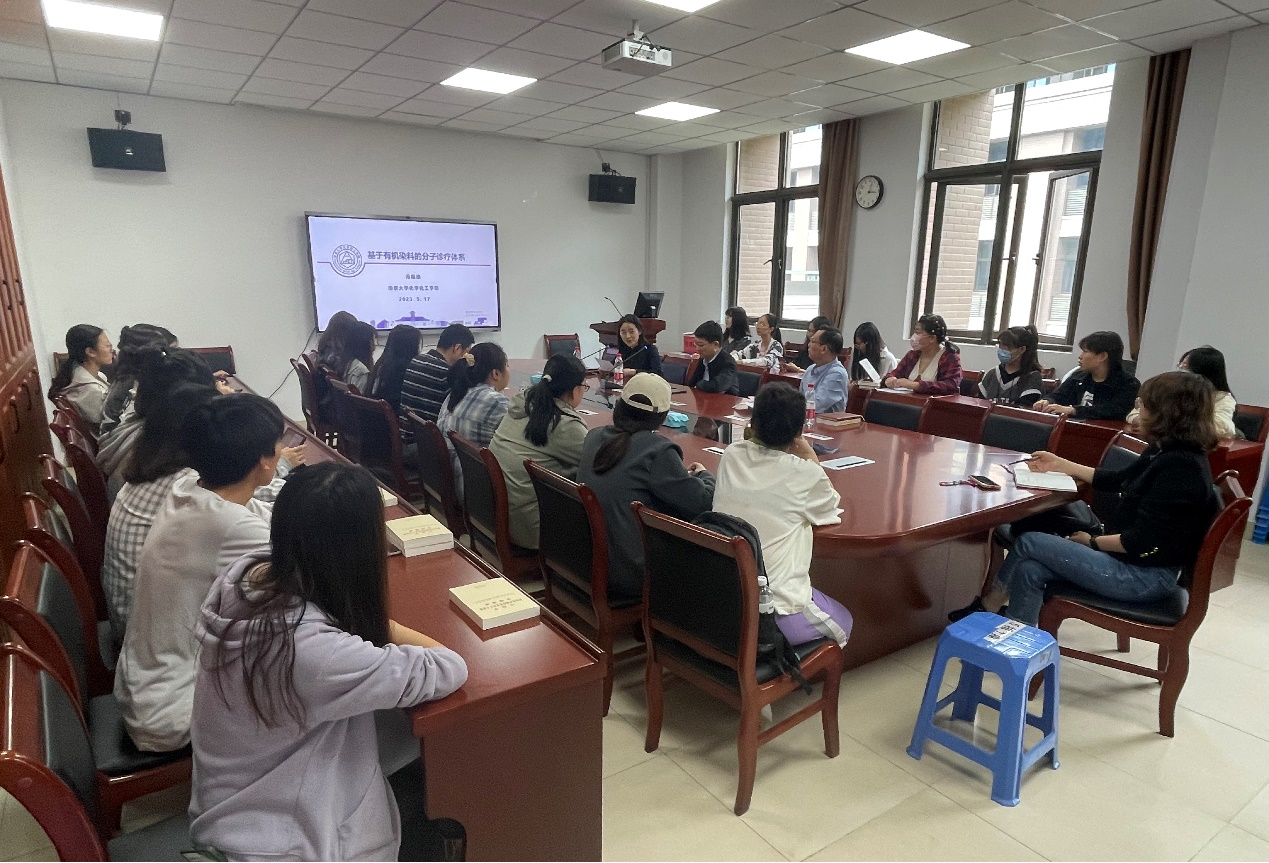 5月17日下午,南京大学化学化工学院高分子系冯福德教授应邀到我校生化学院开展学术交流,作了题为“基于有机染料的分子诊疗体系”学术报告。报告由张雅洁博士主持,姜大炜副教授作为嘉宾参与讨论,丁正峰副院长及相关专业教师和学生参与了交流。