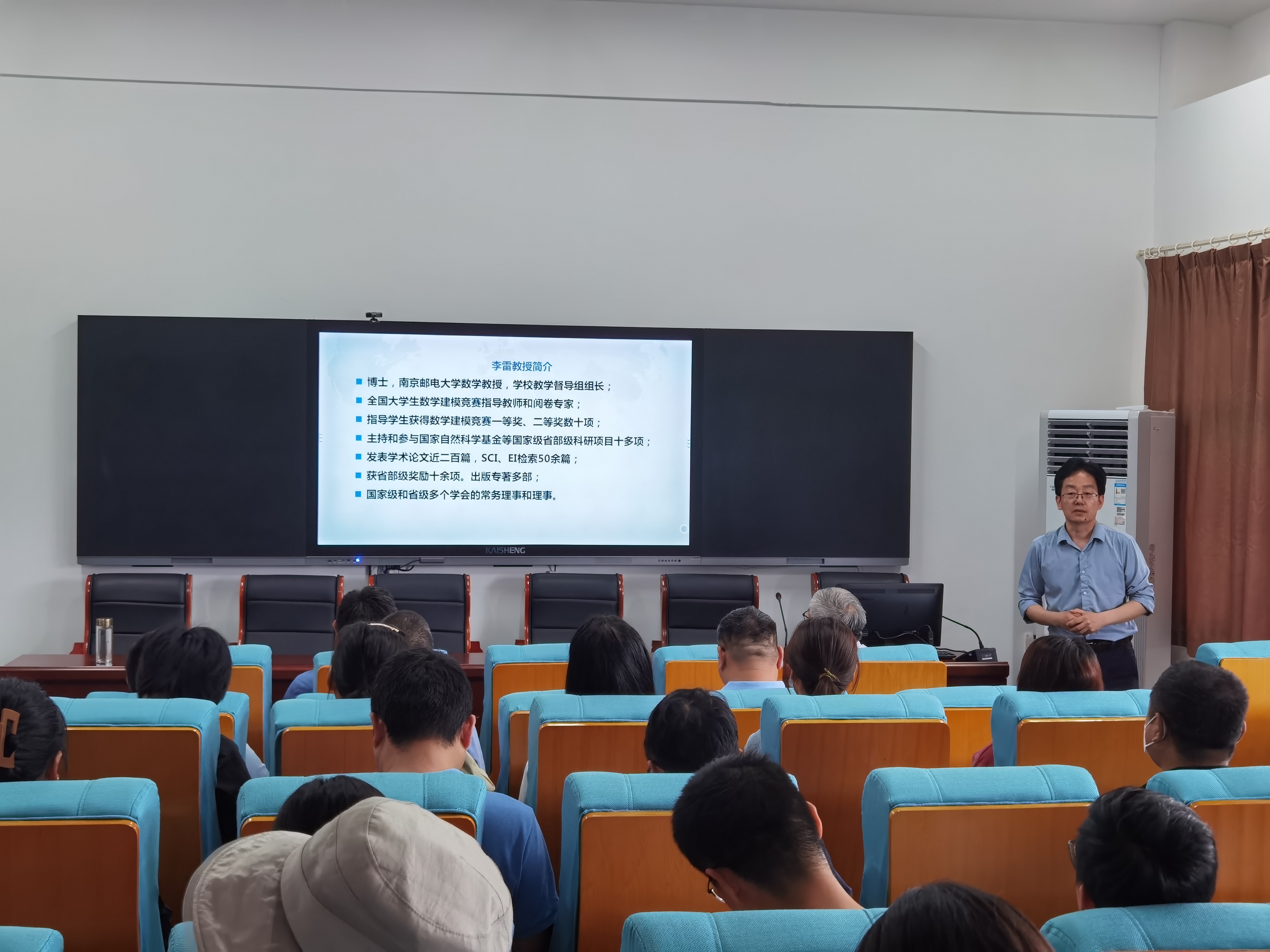 5月31日下午,应数学科学学院的邀请,南京邮电大学李雷教授为数科院教师做了题为“数学建模竞赛的准备与训练”的学术讲座,学院全体教师参加,讲座由卢涛教授主持。