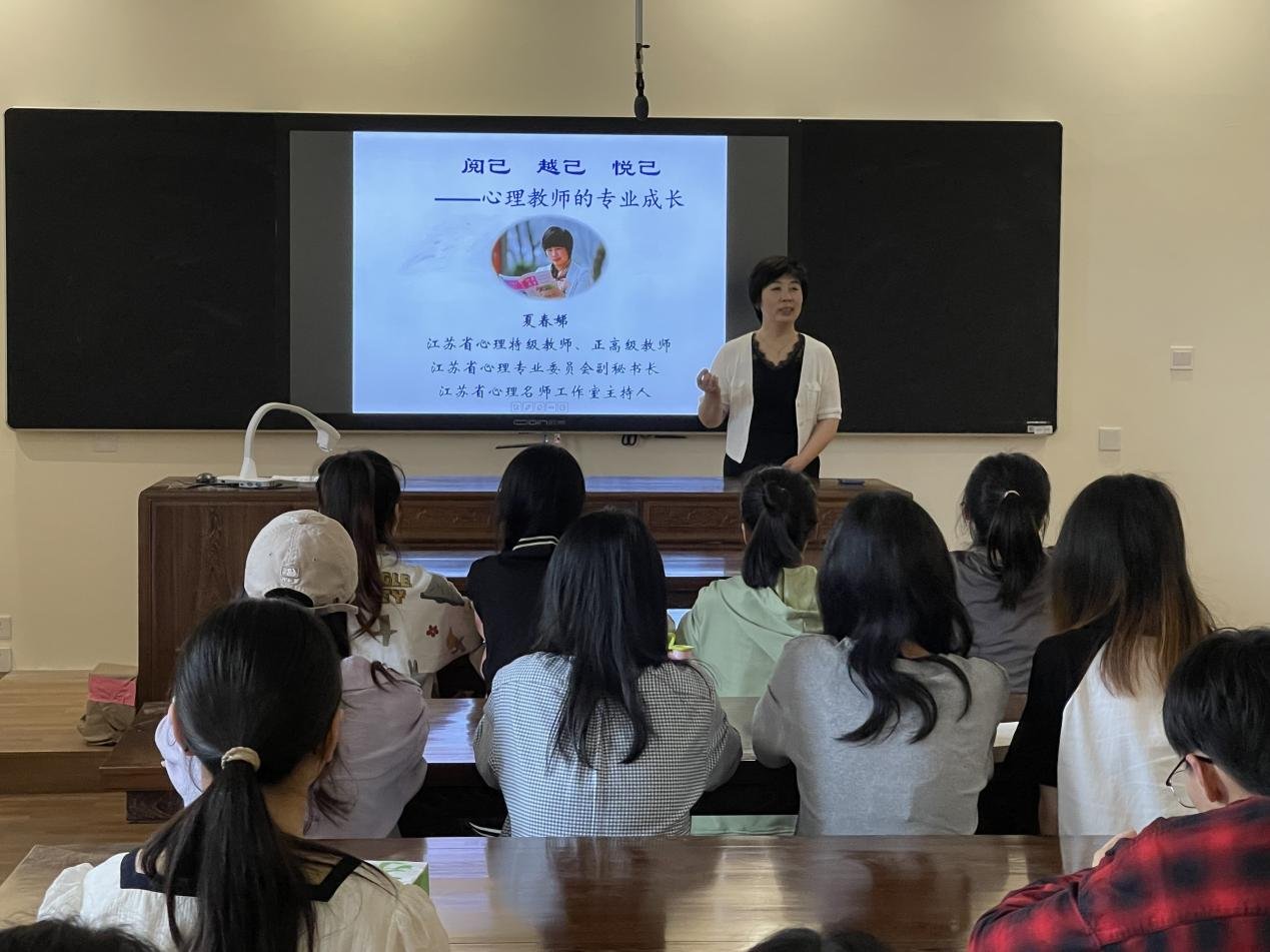 2023年5月31日下午,江苏省教育科学研究院德育与心理研究所夏春娣教授为教科院应用心理学专业师生开设了题为“阅己 越己 悦己:心理教师的专业成长”的讲座。讲座由教科院院长蒋波教授主持。
